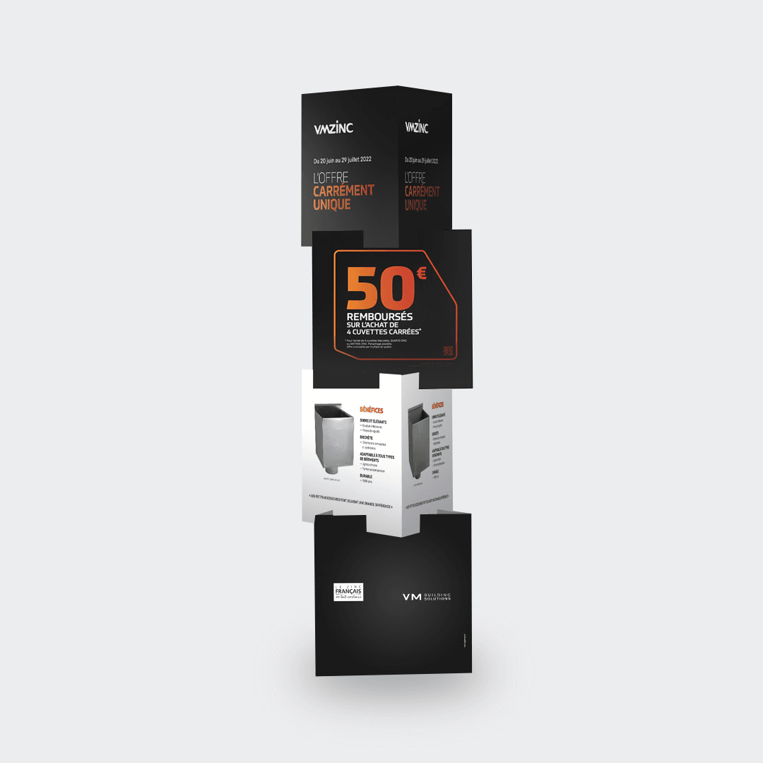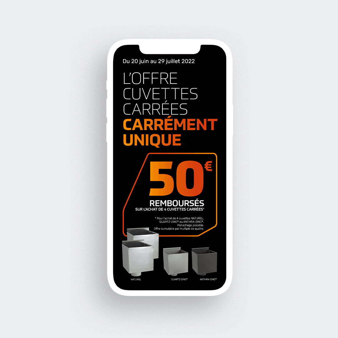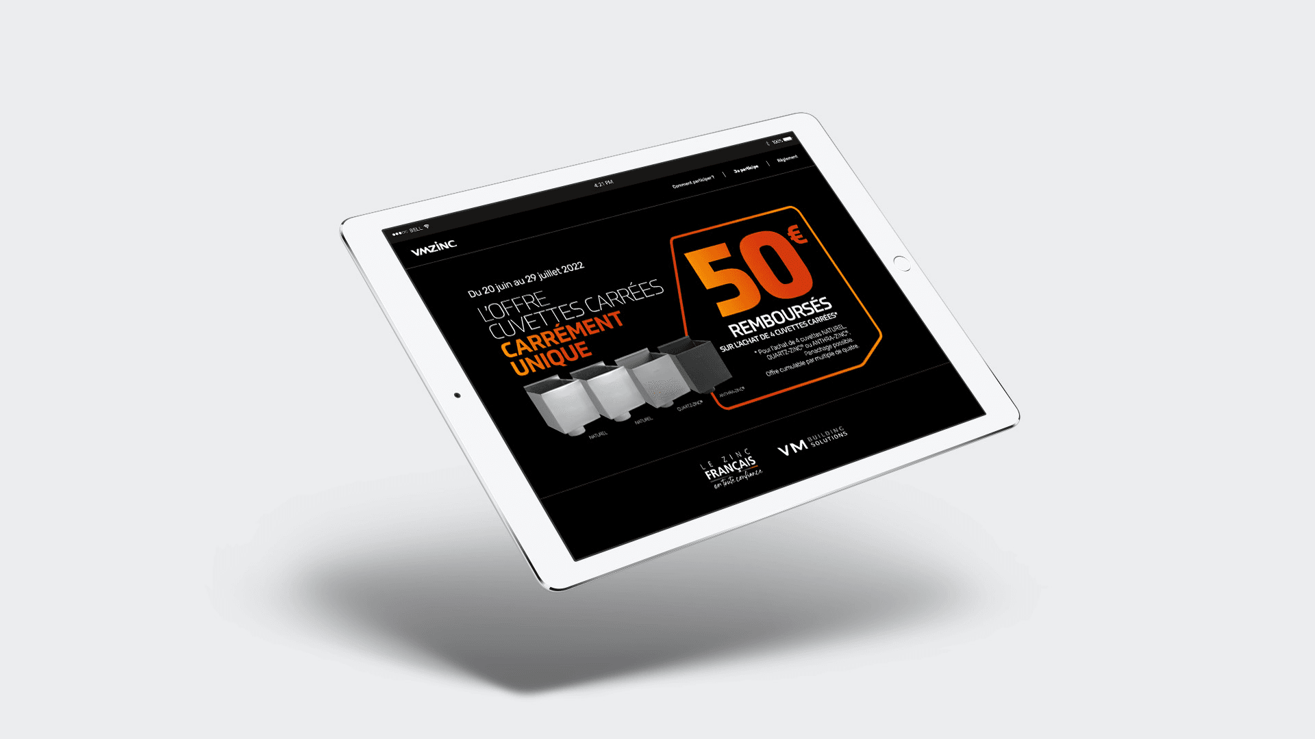 VM BUILDING SOLUTIONS a confié à RED Agency la conception et l’activation d’une opération promotionnelle auprès de son réseau de distributeurs qui s’adresse aux installateurs et plus particulièrement aux entreprises de couverture. L’objectif de l’activation : animer, dynamiser l’offre « Cuvette carrée » et augmenter les ventes avec une offre de remboursement (ODR) : pour 4 cuvettes achetées, 50 € remboursés.