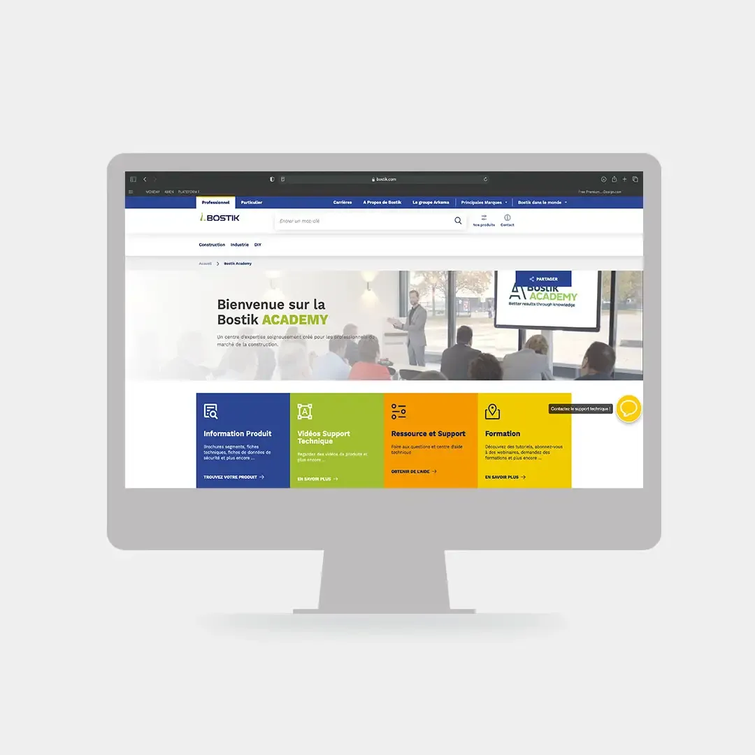 BOSTIK est un leader mondial dans les solutions de collage depuis plus de 125 ans, à travers une cinquantaine de pays ! Les produits de la marque s’adressent aux marchés de l'industrie, de la construction et également au grand public. BOSTIK a récemment créé la BOSTIK ACADEMY, un centre de connaissances et de formation à destination des professionnels de la construction. À l'aide de différentes plateformes et de vidéos, BOSTIK présente ses produits et leurs techniques d’application, avec des astuces et recommandations pour obtenir le meilleur résultat possible grâce à ses produits. ** Nos prestations** : Création du logo et de la charte graphique — Motion design