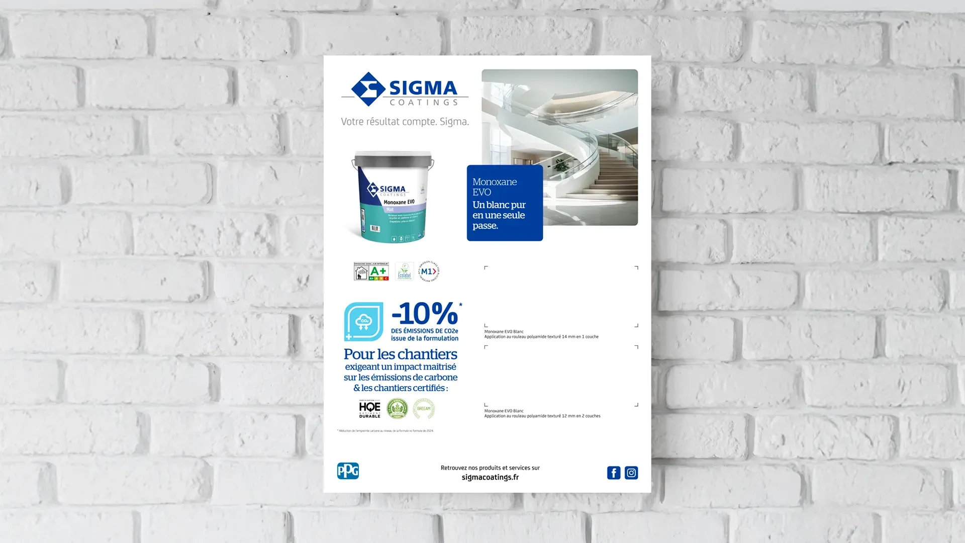 Fondée en 1953 et faisant partie du groupe PPG depuis 2008, Sigma Coatings conçoit des peintures pour le bâtiment à destination des professionnels du secteur. Sigma est une marque de peinture professionnelle qui coache les peintres pour leur faire atteindre de meilleurs résultats.
