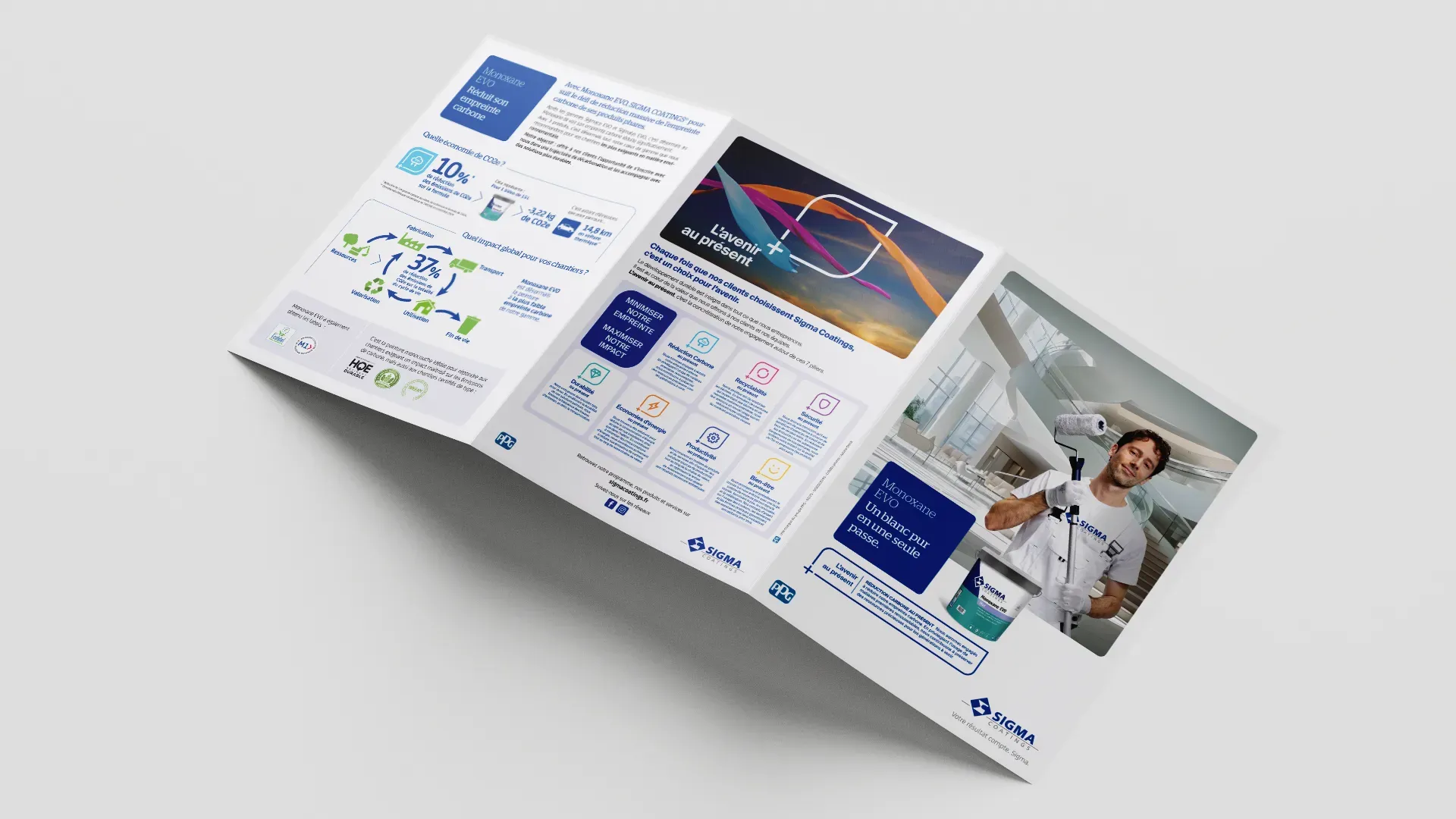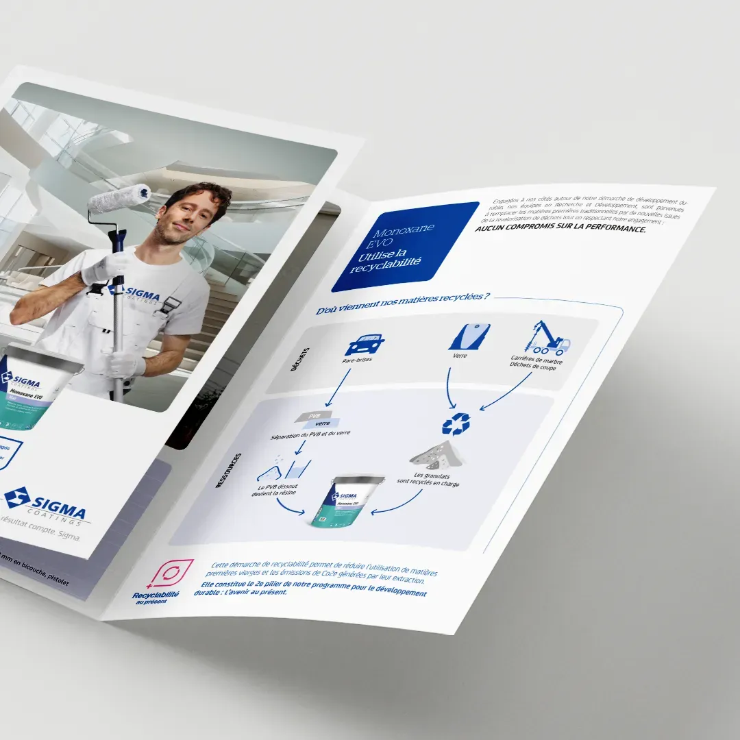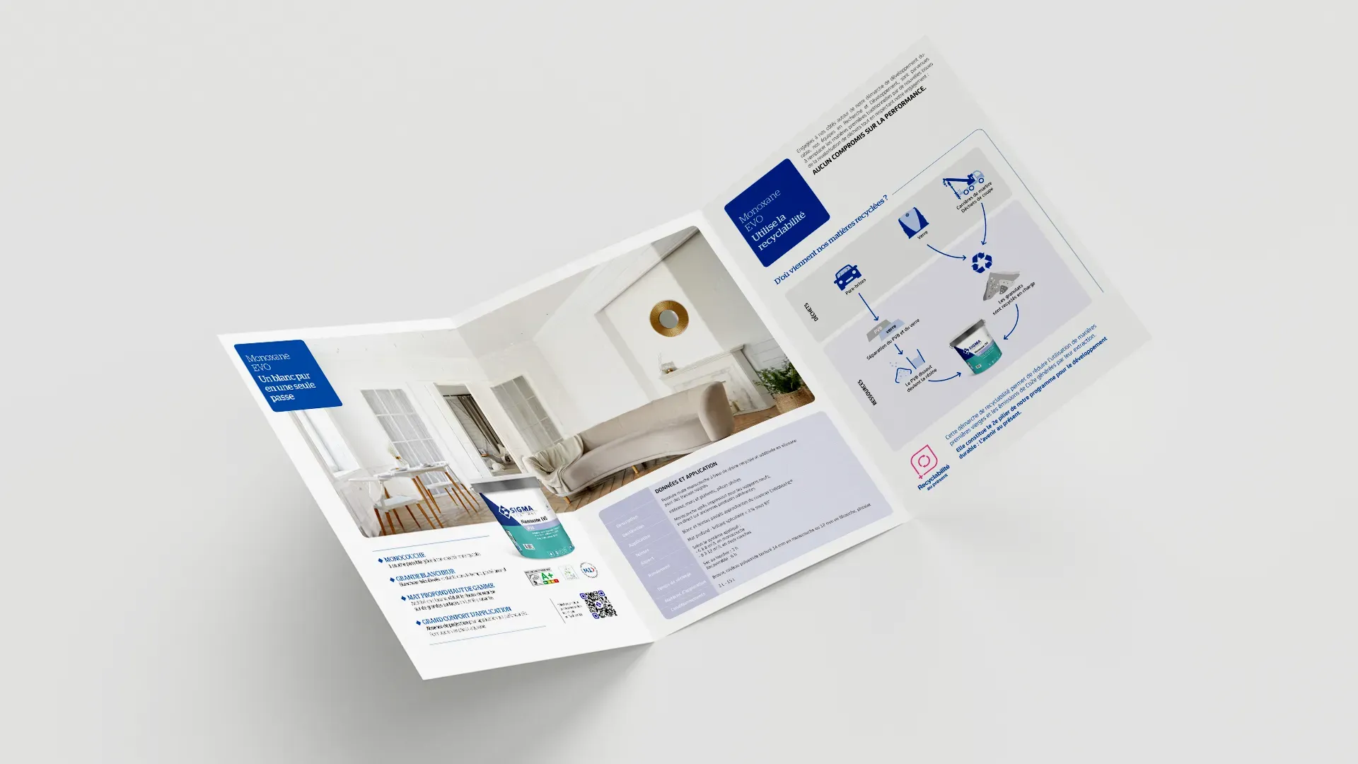 Nos missions : conception, création de la brochure de lancement de la nouvelle peinture.