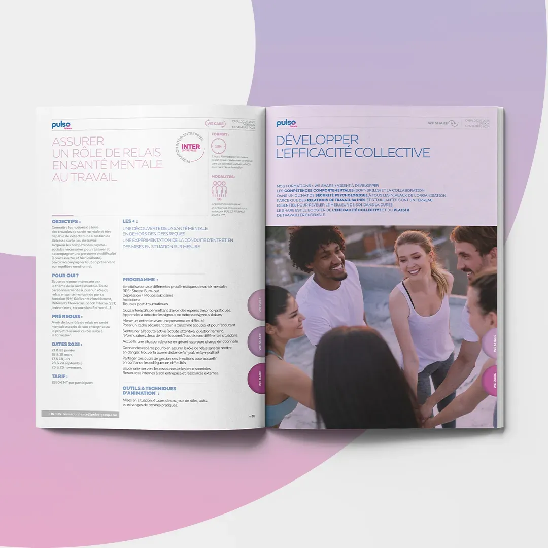 PULSO France a confié à RED Agency la création de son catalogue de formations. Il s’articule autour de 3 thèmes complémentaires :