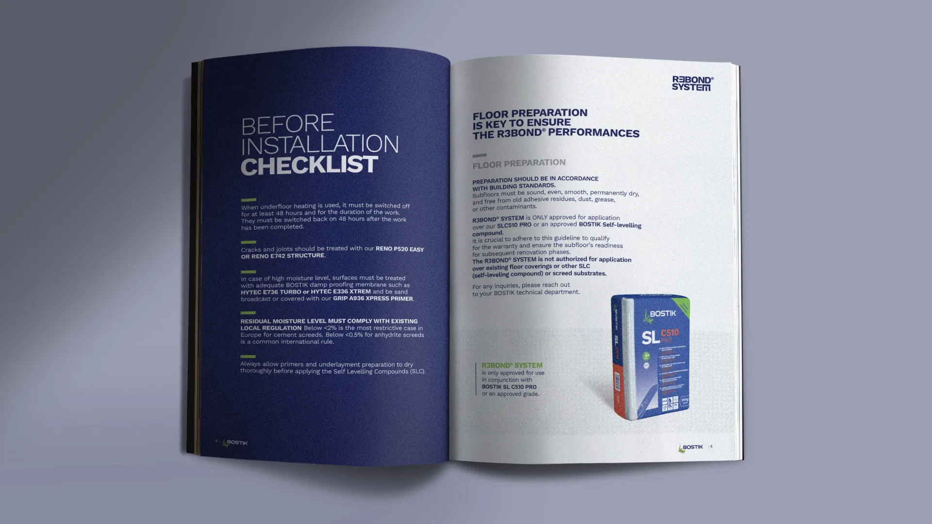 BOSTIK, leader mondial des solutions de collage depuis 125 ans, fournit aux professionnels de l’industrie et de la construction des produits performants et innovants. Présent dans 50 pays, l’entreprise rassemble 5 000 collaborateurs à travers les 5 continents. RED Agency s’est vue confier la création d'une identité visuelle, d'une notice et d'un guide d'installation de la nouvelle gamme de colles pour sols souples, BOSTIK REBOND SYSTEM.
