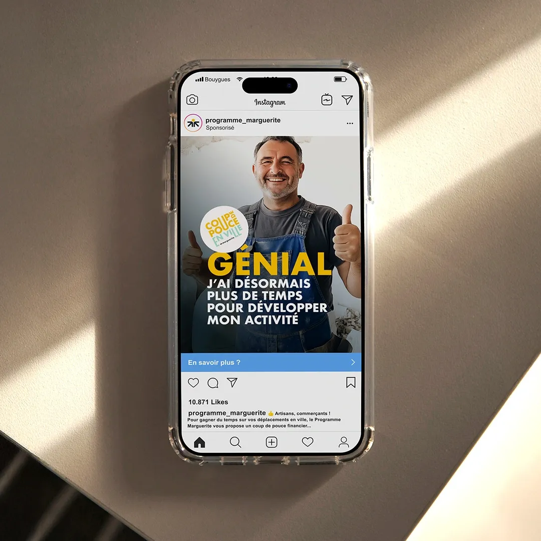 - ainsi que la gestion et la création des campagnes Meta ads et Google ads auprès des artisans et commerçants.
