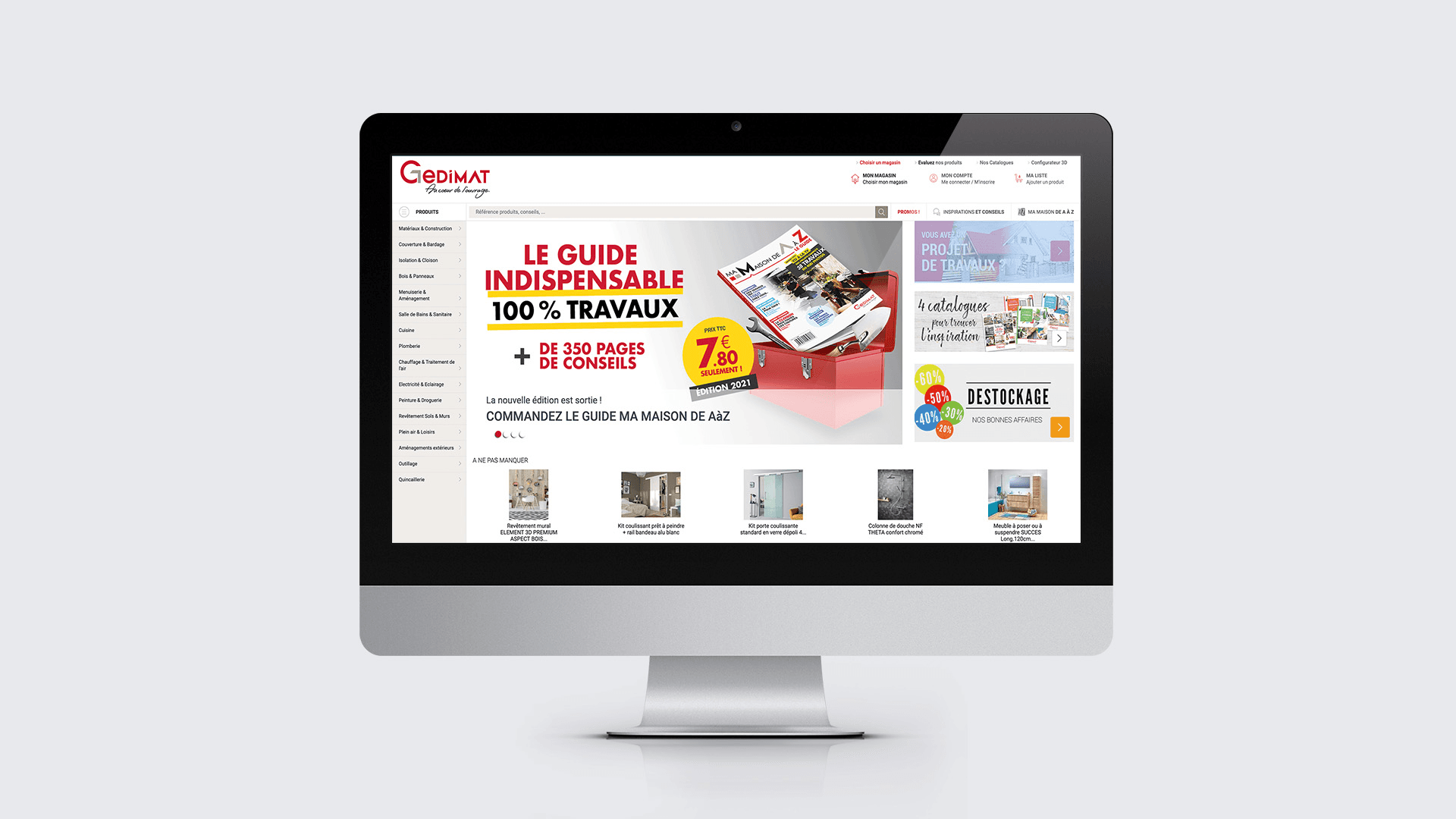 Depuis des années, RED Agency accompagne GEDIMAT dans sa stratégie et réalise des catalogues et guides valorisant son offre permanente ou promotionnelle : Le Guide de la Maison de A à Z, les guides Aménagement Extérieur, Intérieur et Menuiserie et les brochures promotionnelles « Réalisez au meilleur prix ». Pour réussir tous ses projets aux meilleurs prix !