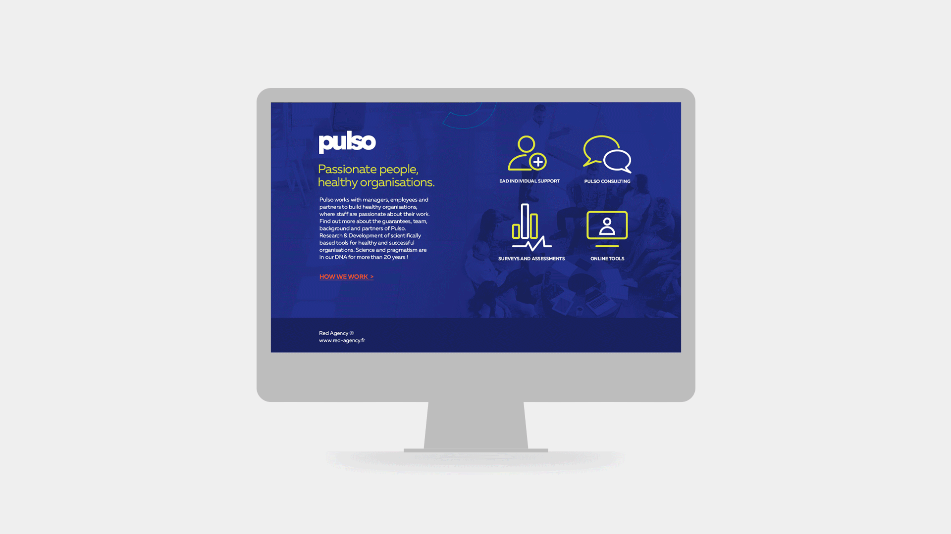 RED Agency accompagne PULSO dans la création du naming de ce tout nouvel outil spécifique. Puis, RED Agency conçoit et réalise une stratégie de communication, ainsi qu’un univers de marque pour faire connaître cette nouvelle application digitale en direction des DRH et des dirigeants des entreprises.