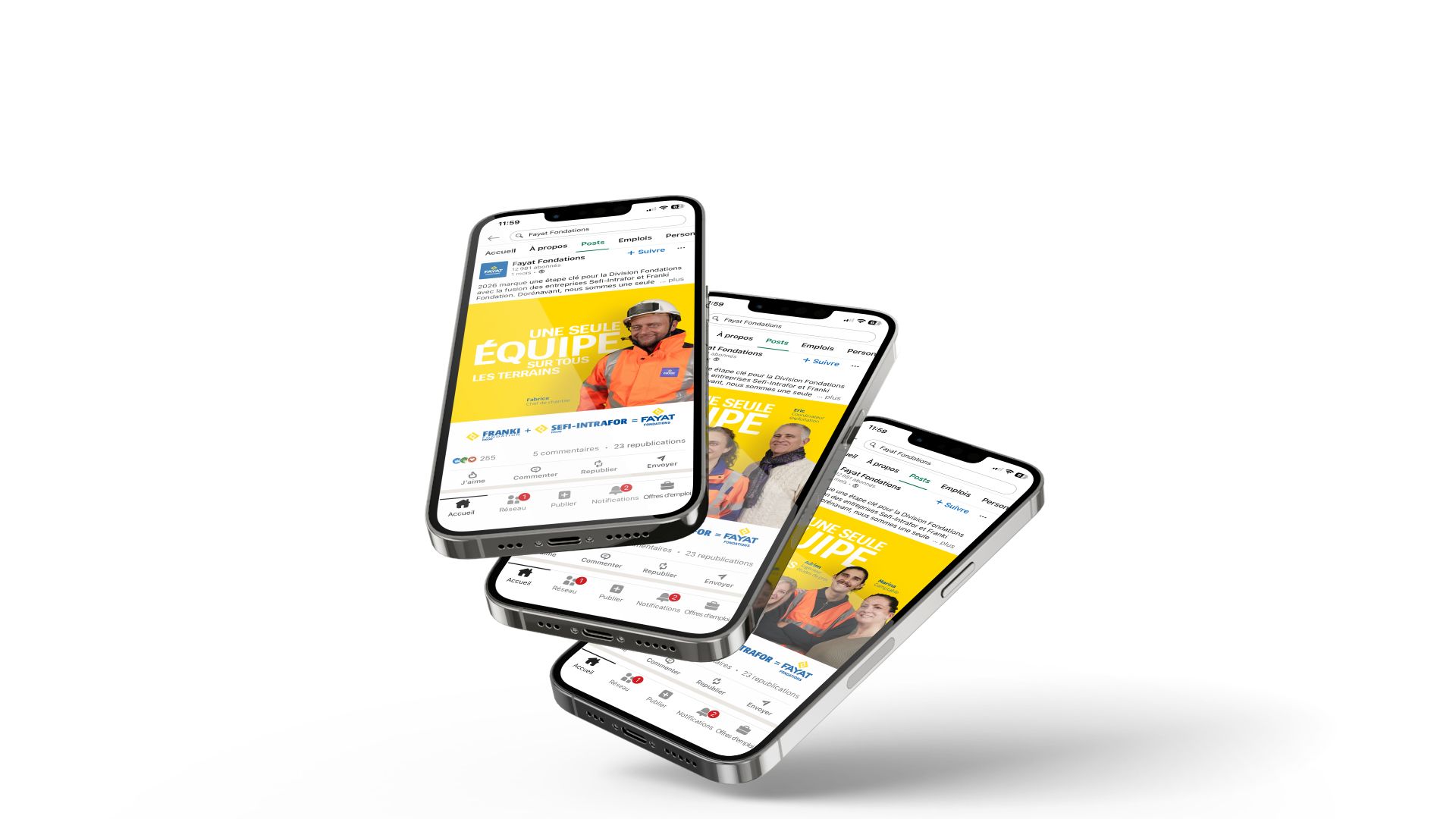 Pour annoncer la création de Fayat Fondations, Red Agency est interrogée pour accompagner ce changement et construire la nouvelle image avec un double objectif : fédérer les équipes internes et les clients.