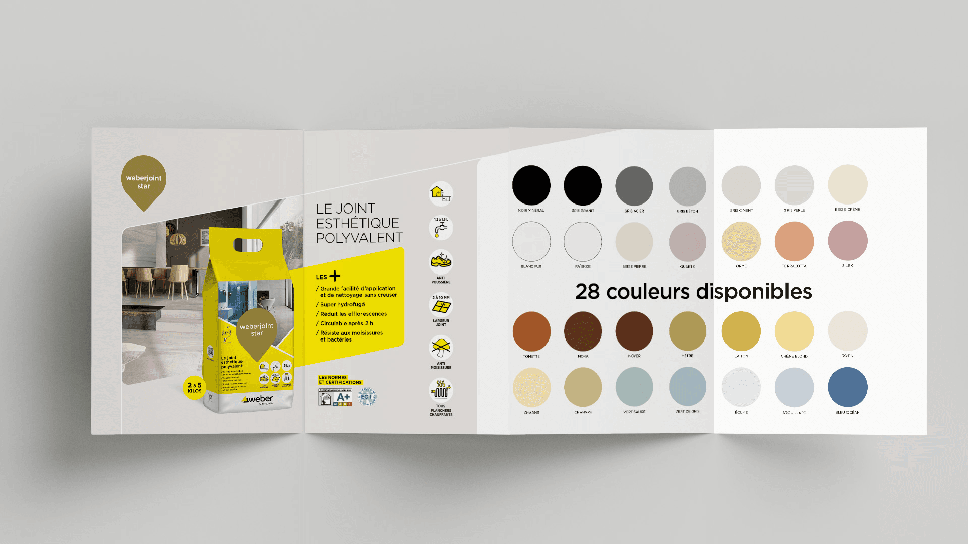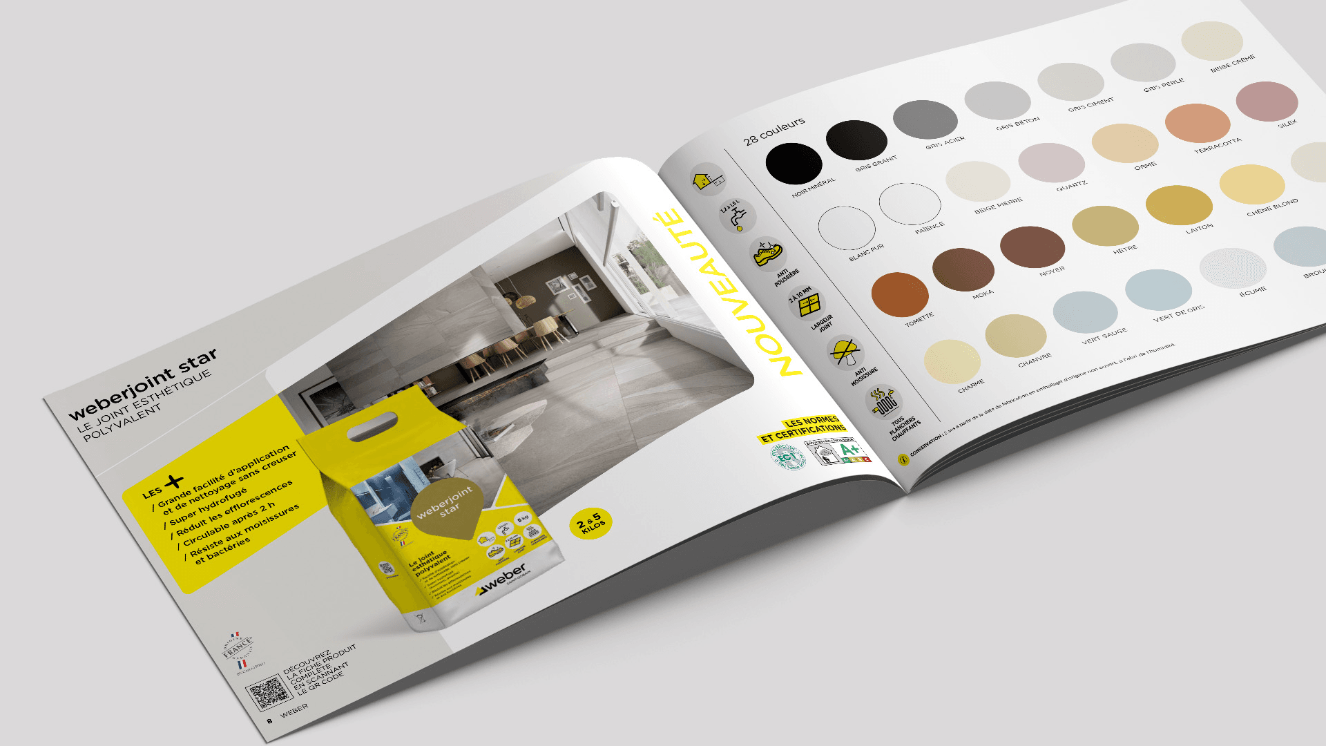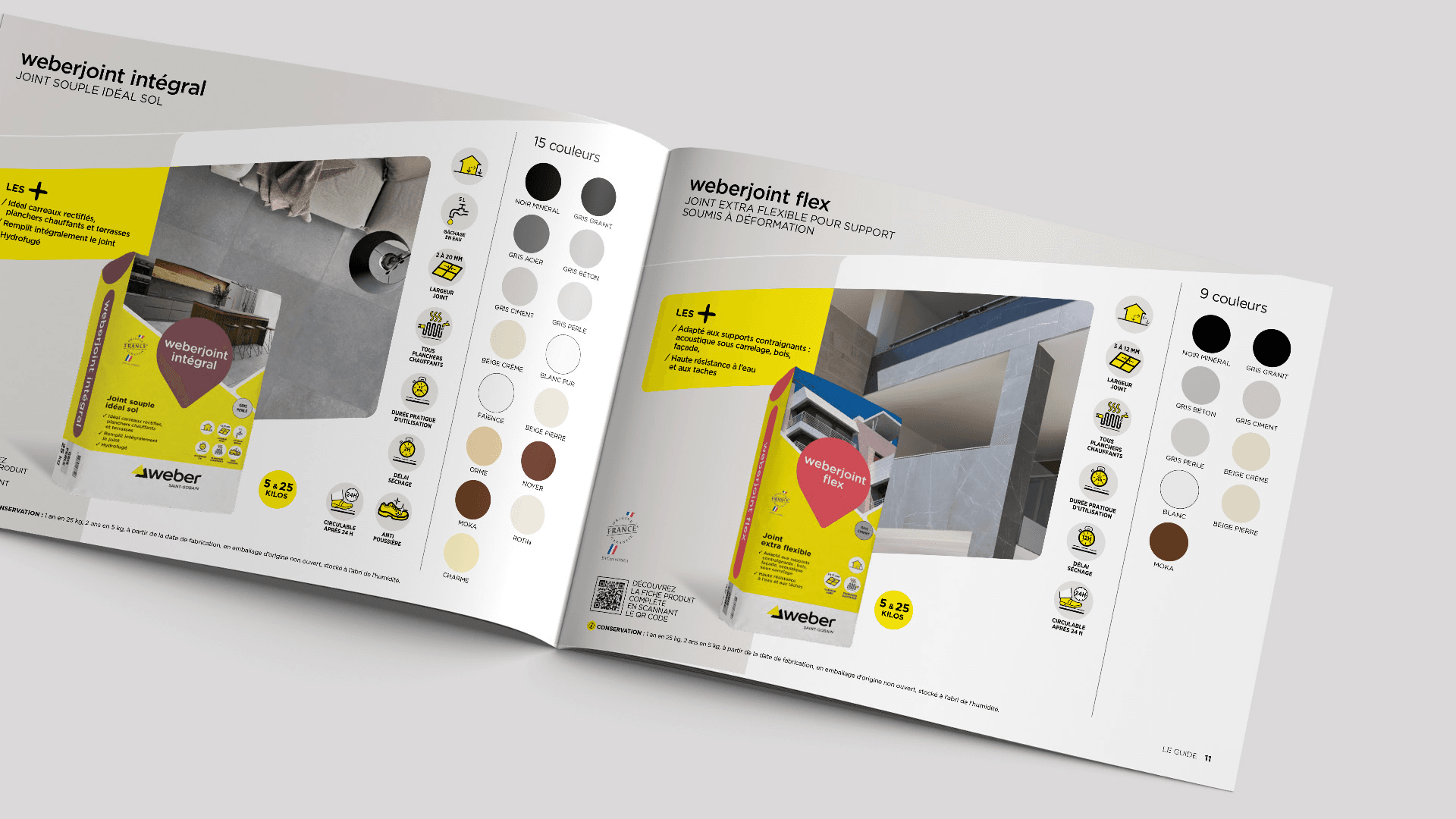 WEBER a demandé à RED Agency de l’accompagner dans le lancement de sa gamme joints. Les objectifs : présenter une nouvelle gamme structurée (segmentation de la gamme par besoin et bénéfices produits), une nouvelle palette de couleurs, lancer un nouveau joint amélioré et un nouveau joint prêt à l’emploi.