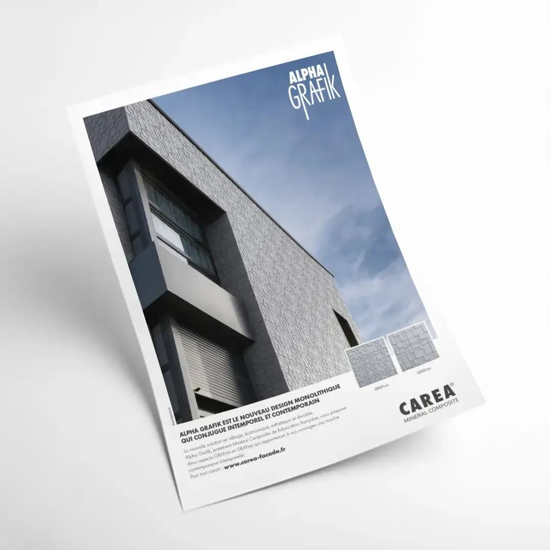Pour CAREA®, l’avenir se dessine aujourd’hui… et la communication se réalise avec RED Agency avec la création de catalogues Salle de Bain et Cuisine valorisant un matériau aux multiples possibilités pour les logements collectifs et individuels et du dispositif de lancement de la nouvelle gamme de bardages sans ossatures CAREA Alpha Graphik® et CAREA 3D®, solutions novatrices pour la conception d'éléments de façade en 3D.