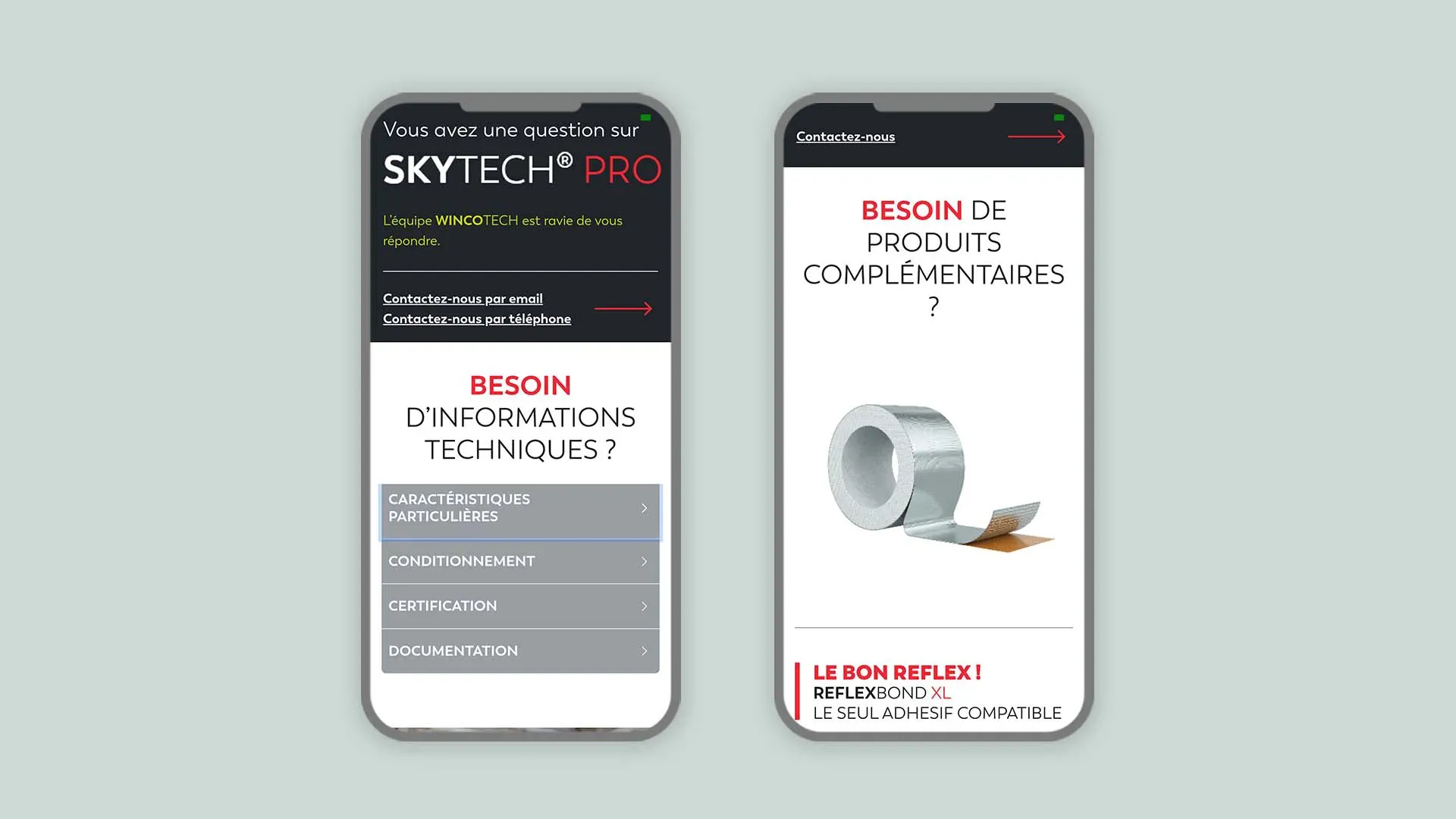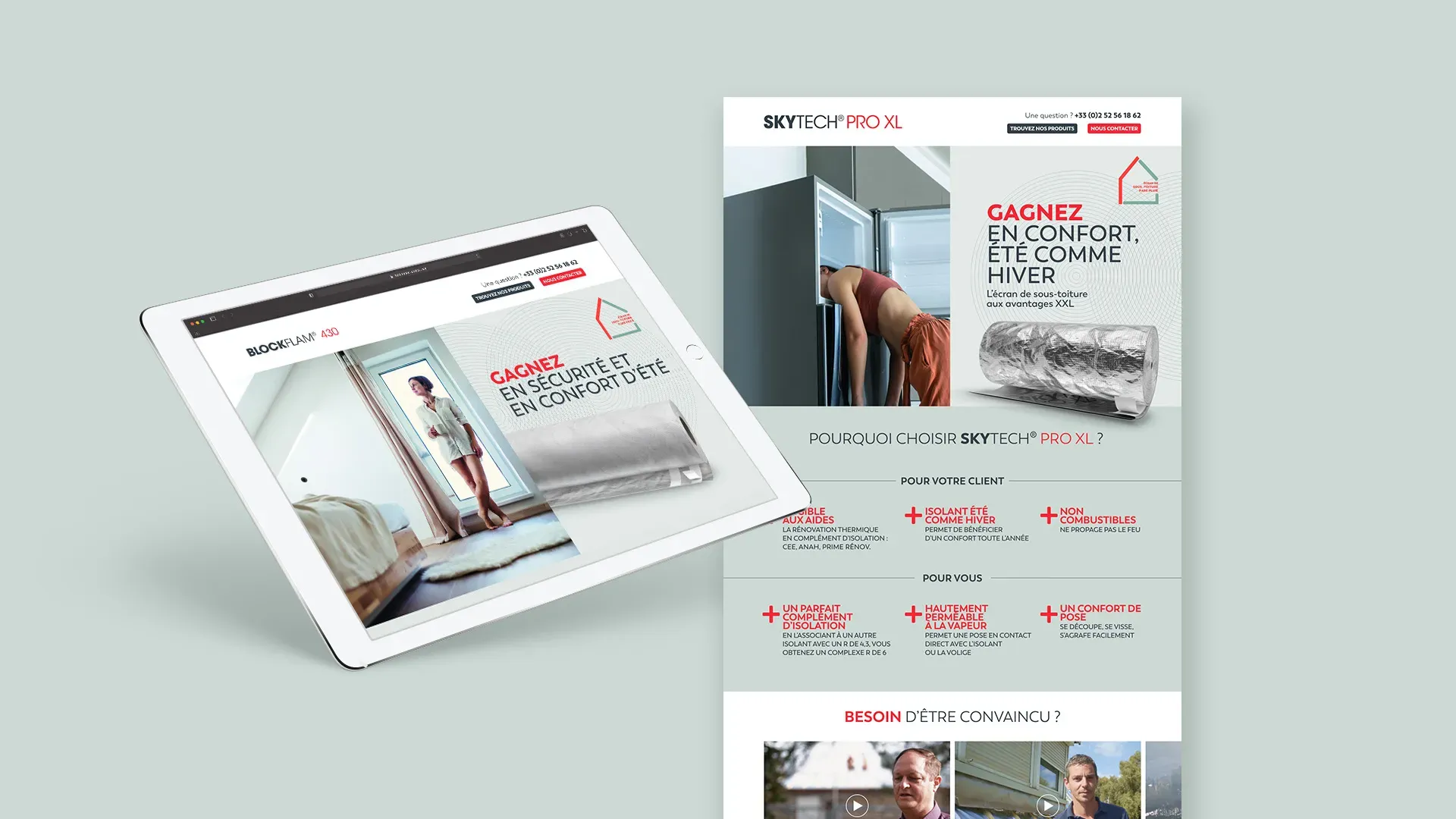 RED Agency a réalisé le webdesign et le développement des landing pages (ou pages d’atterrissages) pour l’ensemble des produits PROS et particuliers de WINCOTECH. Une landing page est un excellent outil marketing pour présenter les produits et générer des leads. Les landing pages PROS : SKYTECH PRO XL, BLOCKFLAM 430, BLOCKFLAM 210, FASSATECH, TRIDAT, INTECH Les landing pages PARTICULIERS : RENOTECH, RENOTECH CONFORT +.