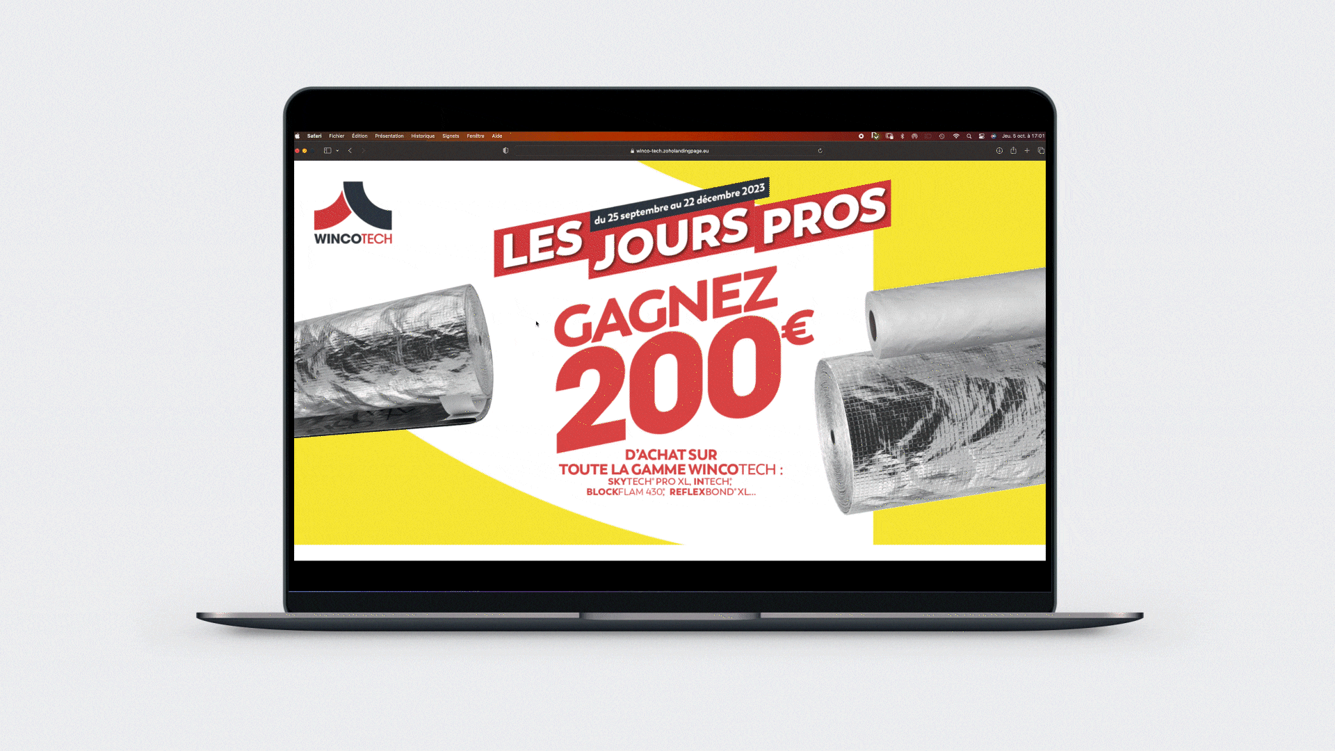 Pour accompagner son développement commercial en France, WINCOTECH et son agence, RED Agency ont mis en place une opération promotionnelle sur toute la gamme WINCOTECH. Une offre promotionnelle qui s’appuie sur une ODR (Offre de remboursement) de 200 € tous les 1 500 € d’achats HT. Au programme : une landing page dédiée à l’opération, un kit de communication magasin (PLV, Flyer) et des bannières web.
