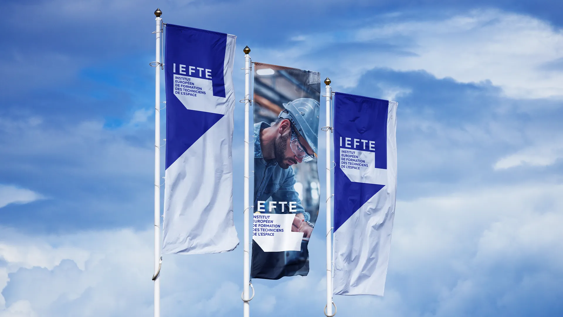 Pour l’IEFTE (Institut Européen de Formation des Techniciens de l’Espace), RED Agency a conçu une identité visuelle forte, capable d’incarner à la fois l’univers spatial et la réalité très concrète des métiers auxquels l’Institut forme.