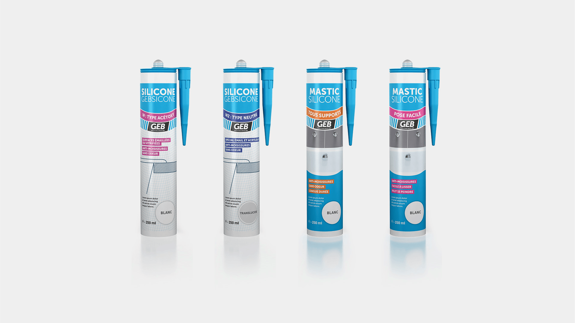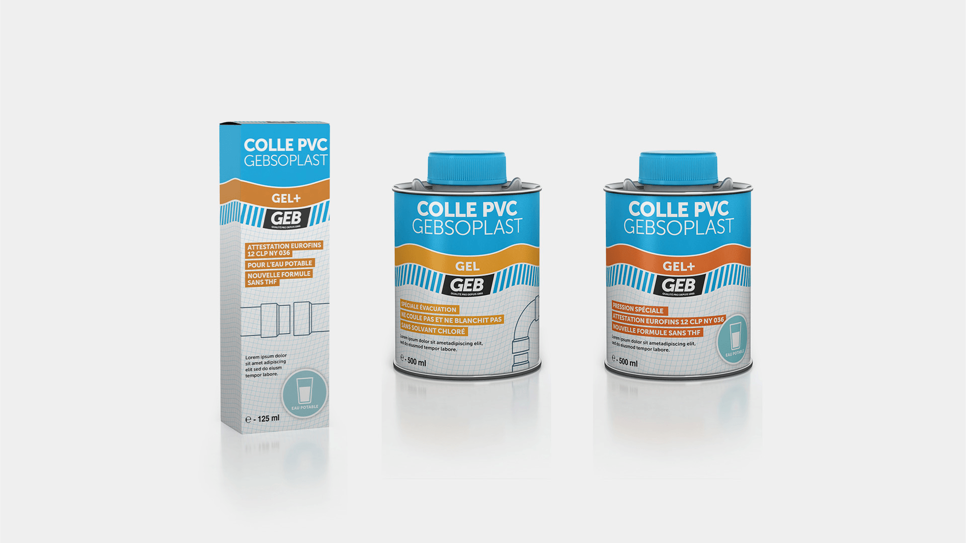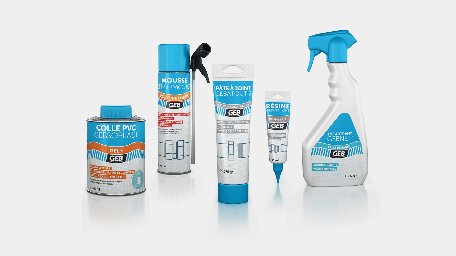 Deuxième fabricant français de colle PVC, leader des fabricants français et européens de colles et mastics réfractaires, GEB est présent dans 50 pays avec une volonté constante d’apporter à l’utilisateur professionnel ou particulier qualité, praticité, et sécurité. Une analyse du parcours client et une enquête terrain ont confirmé la nécessité de repenser l’identité marque et packaging. Objectif : être reconnu et créer la préférence de marque GEB en quelques secondes, grâce à une charte packaging simple et cohérente qui va ORIENTER, RASSURER, CONVAINCRE.