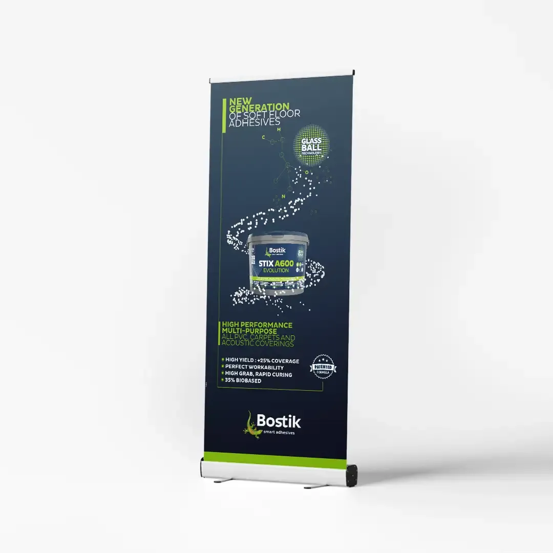 Leader mondial des solutions de collage, BOSTIK est présent dans une cinquantaine de pays et emploie plus 5 000 personnes. La force de la marque est non seulement son expertise sur ce secteur depuis plus de 125 ans, mais également son effort constant pour développer de nouvelles solutions innovantes et toujours plus performantes. Pour le lancement à l’international de son produit innovant le STIX A600 ÉVOLUTION, BOSTIK a demandé à RED Agency de réaliser la charte graphique associée à cette nouveauté, ainsi qu’un ensemble d’outils pour communiquer auprès de leurs différentes cibles (équipe commerciale et clients) : Vidéo de lancement UK — Key visual / 3D — Présentations commerciales — PLV / KAKEMONO / RACK — Goodies — Signature email.
